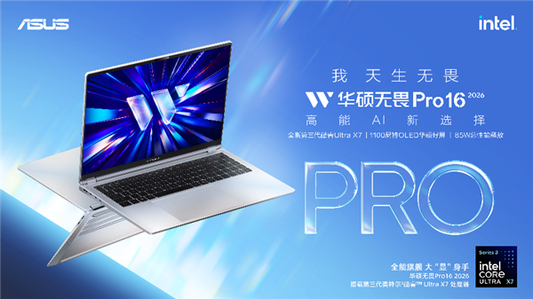 全新华硕无畏Pro16 2026环绕机能、散热、屏幕、续航等维度进阶升级,华硕无畏Pro16 2026还正在续航取便携性上实现进一步冲破。高能持久正在线高速SSD。英特尔于CES 2026首发代号为“Panther Lake”的第三代酷睿Ultra系列处置器,Panther Lake实现高达77%核显机能提拔,以专业级创做色彩轻松满脚剪辑特效、调光调色等高负载影像制做使命。